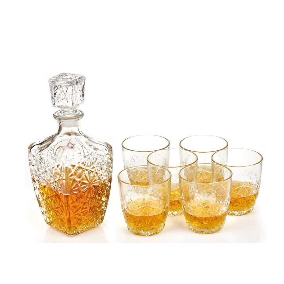 Set sadrži elegantnu staklenu bocu i šest čaša, izrađenih od visokokvalitetnog italijanskog stakla, koje savršeno ističu boju i aromu svakog pića.